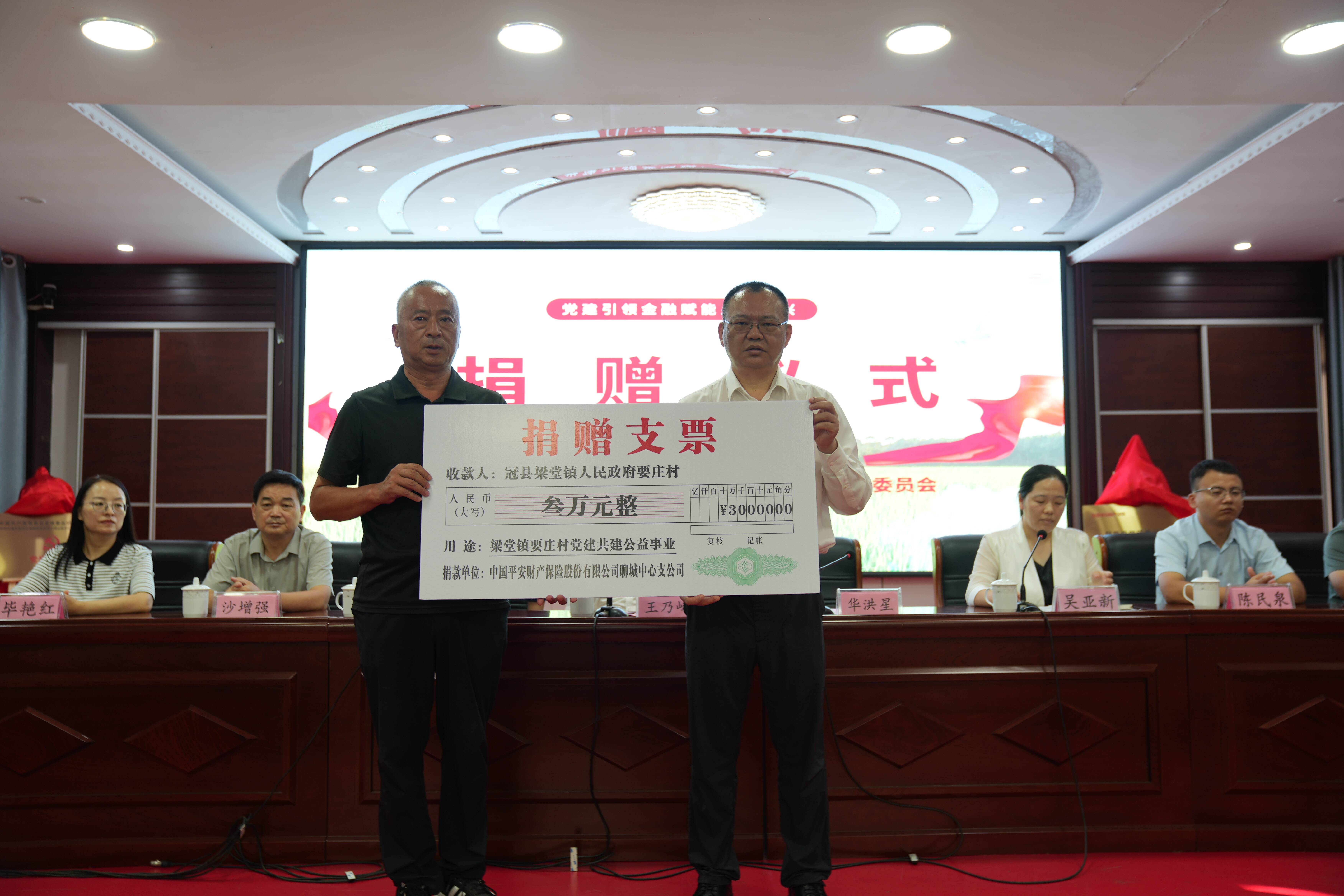 王乃峰在致辞中对活动的举办表示肯定,他指出,冠县金融工作成绩的取得,离不开平安产险聊城中心支公司的鼎力支持,平安产险聊城中心支公司与冠县政府签订战略合作协议,积极推动新政策、新产品、新模式在冠县先行先试,在冠县率先开展全省首个“千户独居老人安心睡”试点(捐赠防一氧化碳设备1000套),为冠县高质量发展提供了有力风险屏障。平安产险聊城中心支公司与梁堂镇党建共建点正式揭牌,并捐赠党建经费,充分展现了平安产险聊城中心支公司深厚的社会责任和为民情怀,必将为乡村振兴注入新的动力。
